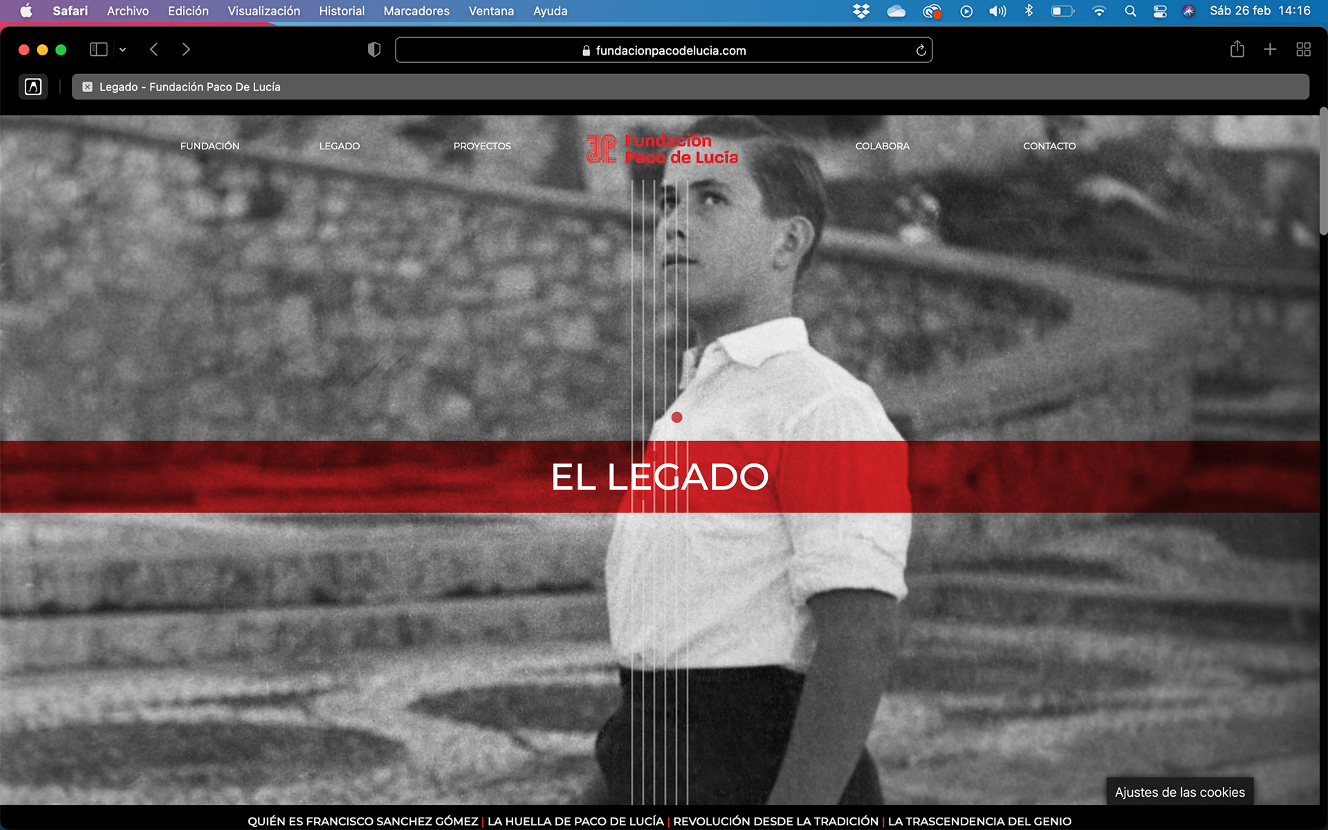 Dirección de arte y diseño de web de la la recientemente creada Fundación Paco de Lucía. En colaboración y el Desarrollo web es de SAO BRANDING. Año 2020.